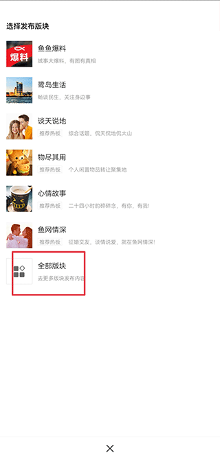 2、依据帖子内容挑选拟发布的板块,点击“全部板块”可查看更多可供选择的板块。