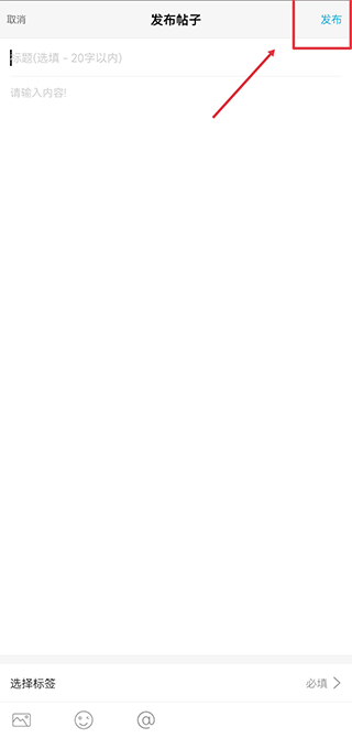 3、最后把帖子内容编辑好后,点击右上角的发布按钮就能完成发布了。