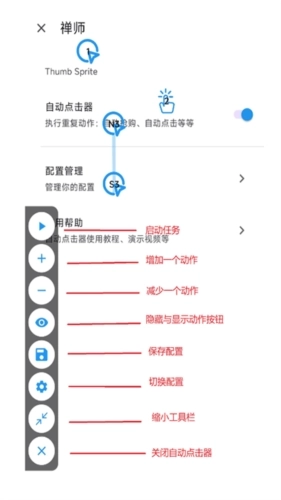 2、操作栏和点击按钮支持触摸拖动操作,下方图片为工具栏的详细说明。