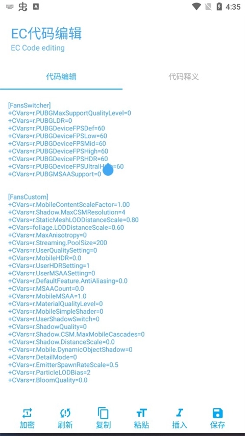 3、最后还可以点击ec代码编辑来自定义帧率。