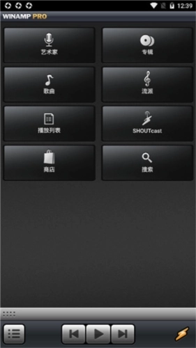 Winamp手机版的主界面,除了具备操作向导功能外,还为用户提供了多种歌曲分类方式,像按艺人、专辑、歌曲、播放列表、历史记录以及搜索等类别划分。这些分类方式对多数人而言都比较熟悉,用户只需轻点一下,就能进入对应的内容页面。
