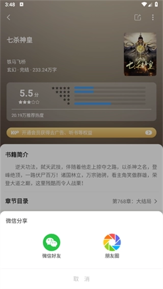 3、就可以选择通过朋友圈分享或者直接转发给微信好友,转发后对方就能通过链接阅读这本书了。
