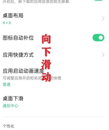 进入桌面与乐划锁屏页面后,向下滑动;