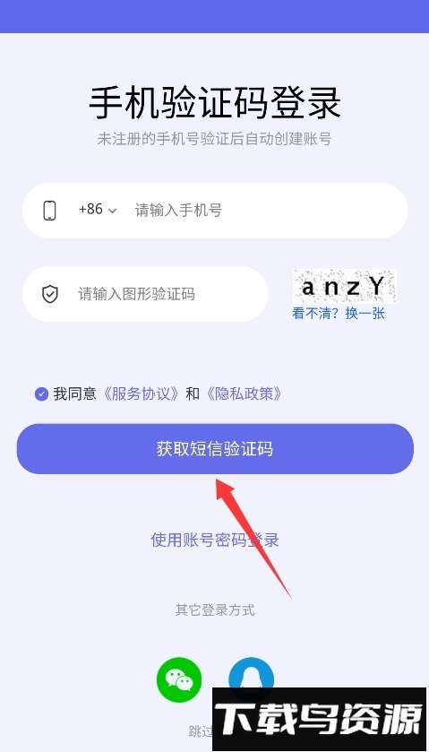 1、输入手机号码与图形验证码,在同意用户协议后点击“获取短信验证码”按钮,即可完成登录操作;