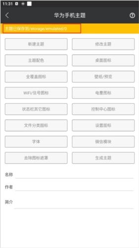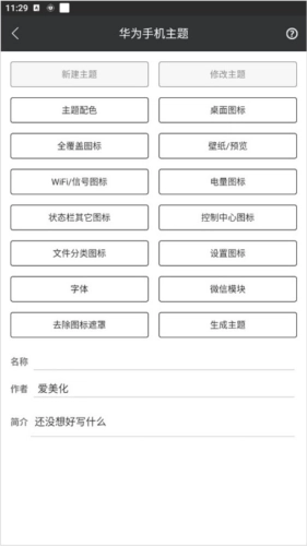 3、输入主题名称与作者名后,即可编辑并设置自己心仪的主题图标。
