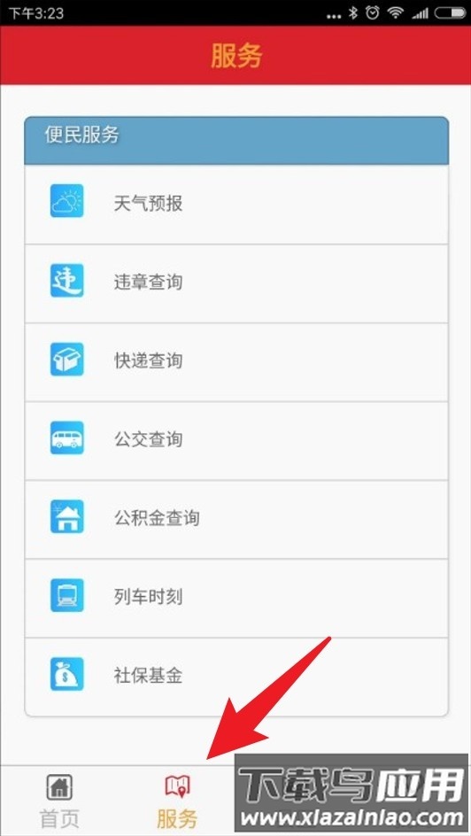 2. 点击「服务」选项进入便民页面,即可查询天气、快递、公积金等各类信息;
