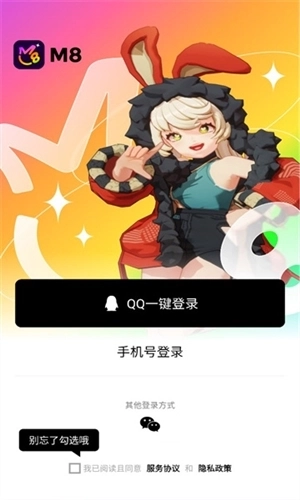“M8”这款社交软件的风格与玩法都十分新潮。用户能够通过QQ号、微信号或者手机号来登录。登录成功之后,就会进入到主界面。