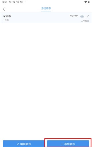 1、在本站安装全国天气预报应用,安装完成后打开进入,点击首页左上角的“+”图标