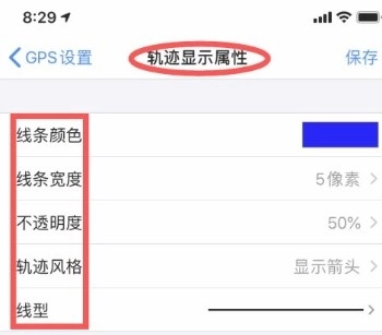 4、随后进入“轨迹属性”设置,自定义轨迹线条的颜色、线型、透明度等显示样式。