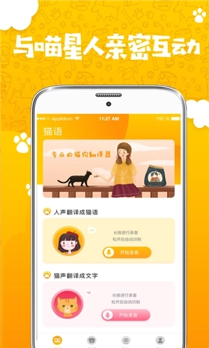 1.实时翻译功能:这款应用软件可对人类与动物之间的互动交流进行即时语言转换,助力人们更深入地理解并顺畅地与猫狗开展沟通。