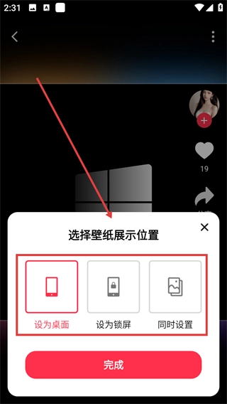 在壁纸详情页点击【设为壁纸】按钮后,会弹出用于选择壁纸显示位置的窗口。