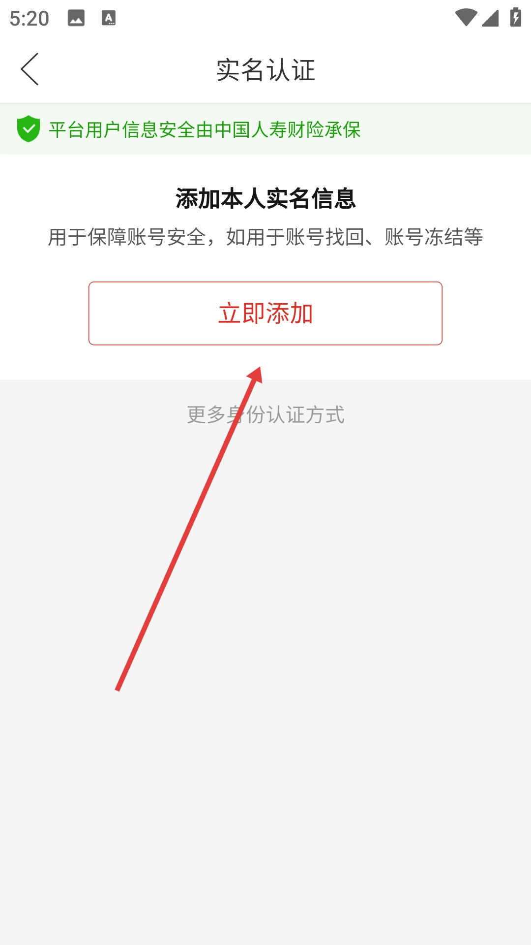 在实名认证页面找到并点击【立即添加】按钮,即可启动本人实名信息的添加流程。