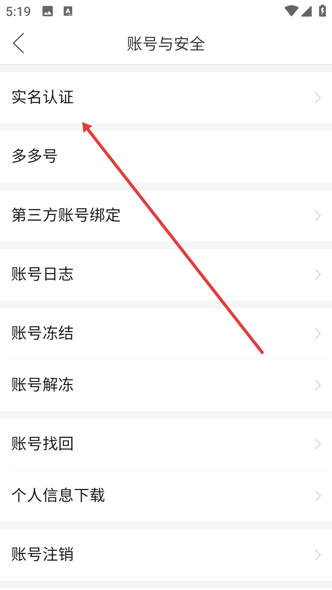 进入账号与安全页面后,找到并点击【实名认证】选项,即可跳转至实名认证页面。