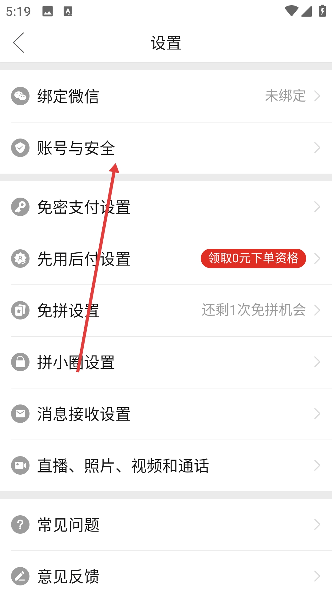 在设置页面找到并点击【账号与安全】选项,即可进入对应的账号与安全页面。