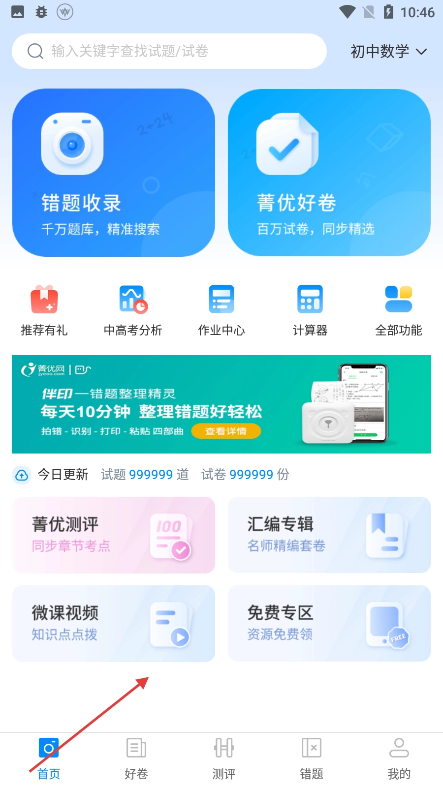 完成注册登录操作后,用户能够在菁优首页运用错题收录、浏览菁优好卷这类功能,还可以借助中高考分析、作业中心等工具来辅助自己的学习。