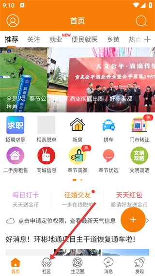打开软件首页后,点击底部的【社区】按钮,进入社区板块,就能看到各类功能入口。