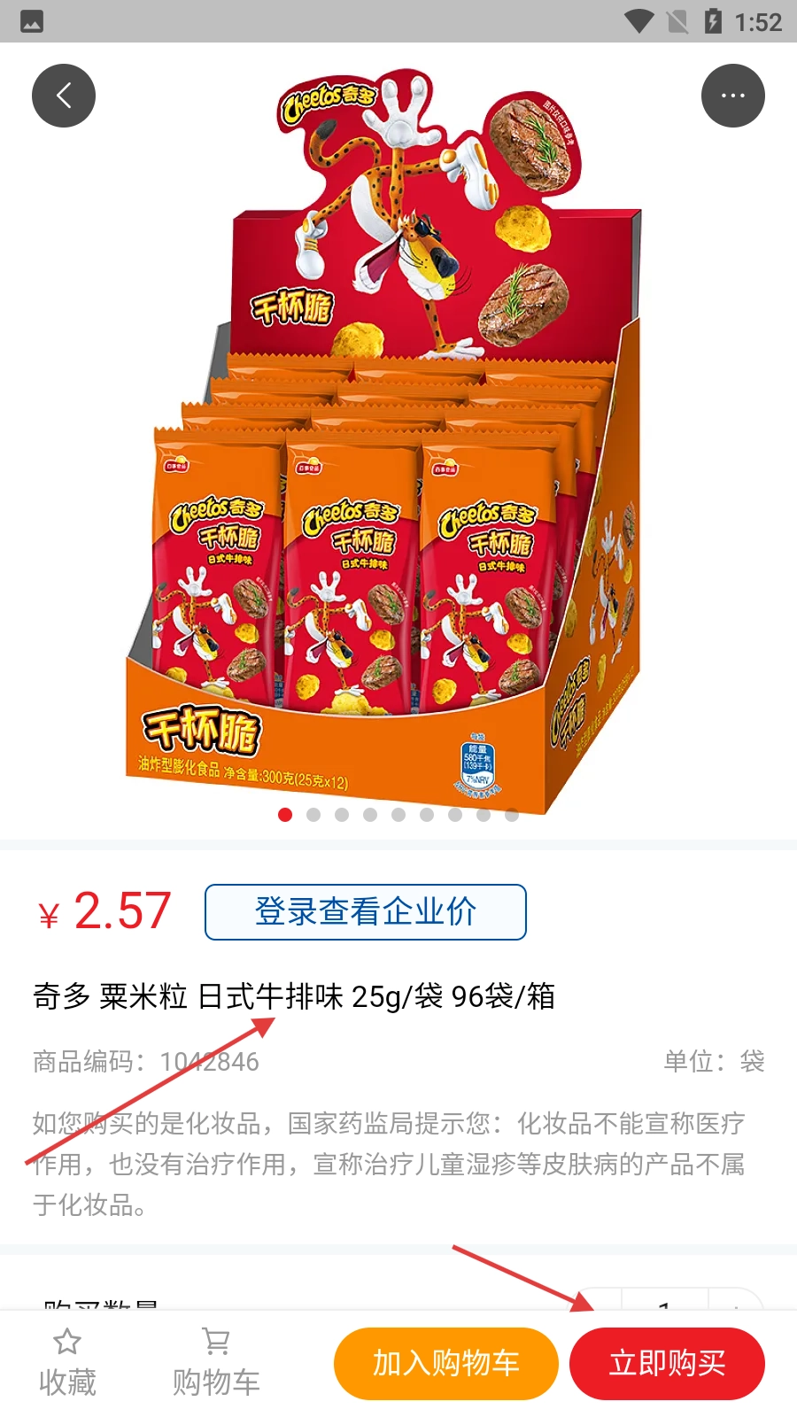 进入商品详情页面,浏览商品相关信息后,您可以点击【加入购物车】按钮暂存商品,或直接选择【立即购买】选项,从而完成商品的采购流程。