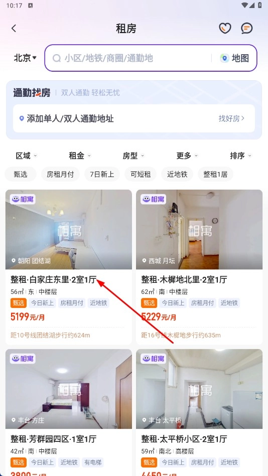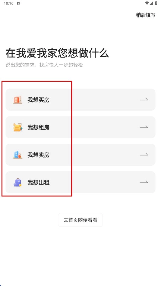 在多选项中,你可以选择【我想租房-功能选项】,随后进入应用的首页面。