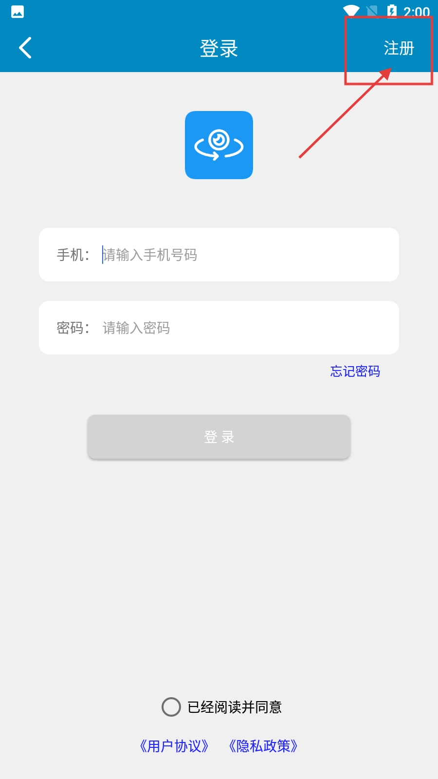 在登录页面,点击右上角的【注册】按钮,即可进入注册流程页面。