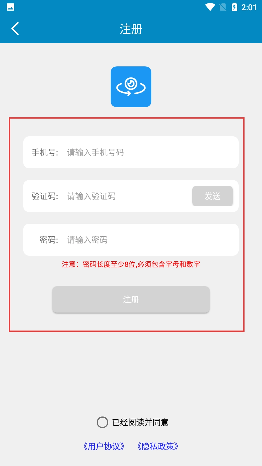 在注册页面,填写手机号码、验证码,设置满足要求的密码,勾选同意相关协议后点击【注册】按钮,就能完成整个注册流程。