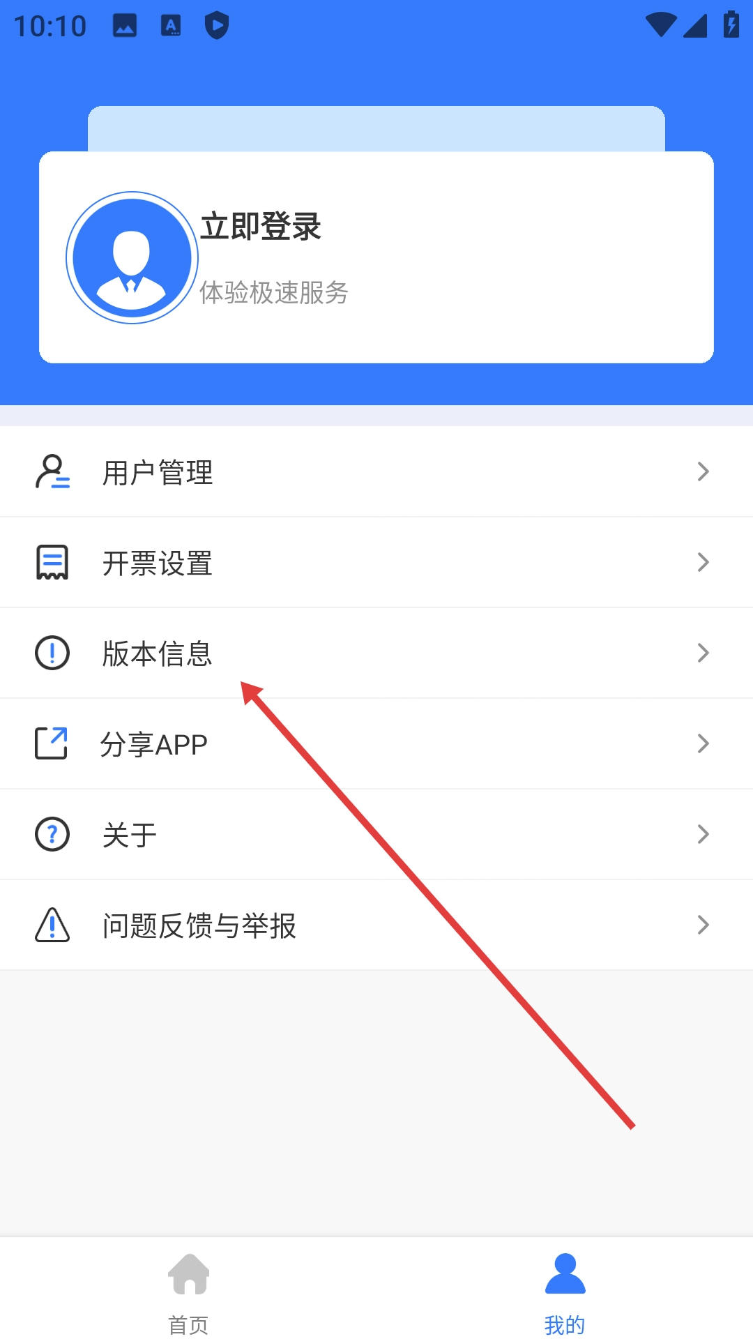 在个人页面点击【版本信息】,进入版本信息页面。