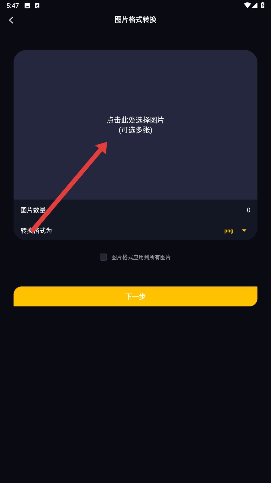 点击【图片格式转换】功能按钮,即可进入图片选择页面。