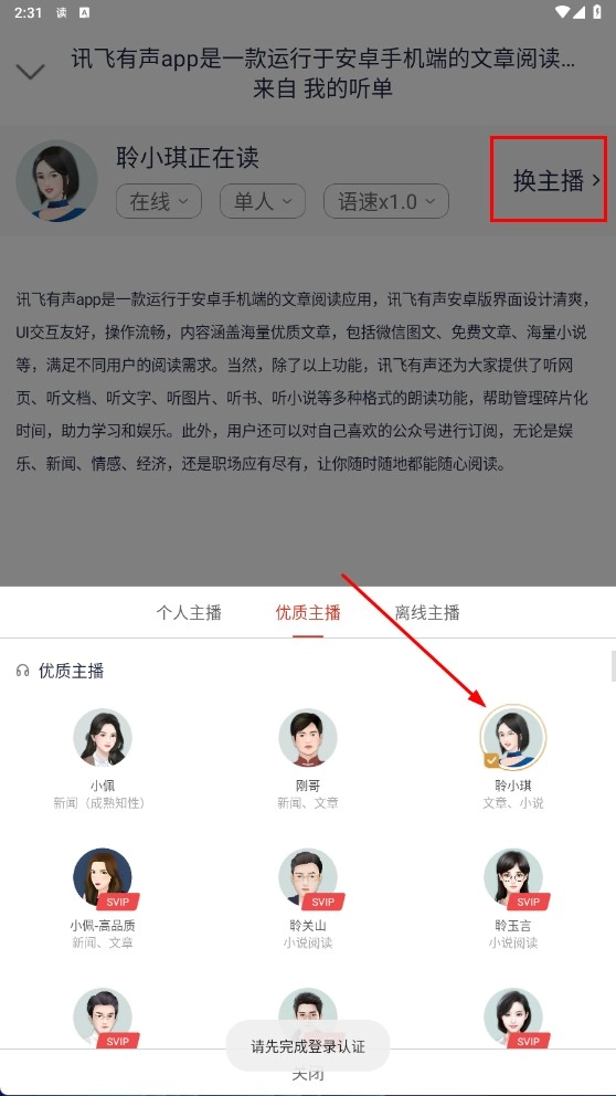 点击【换主播】功能按钮,就能挑选像聆小琪这类优质主播来完成切换操作。