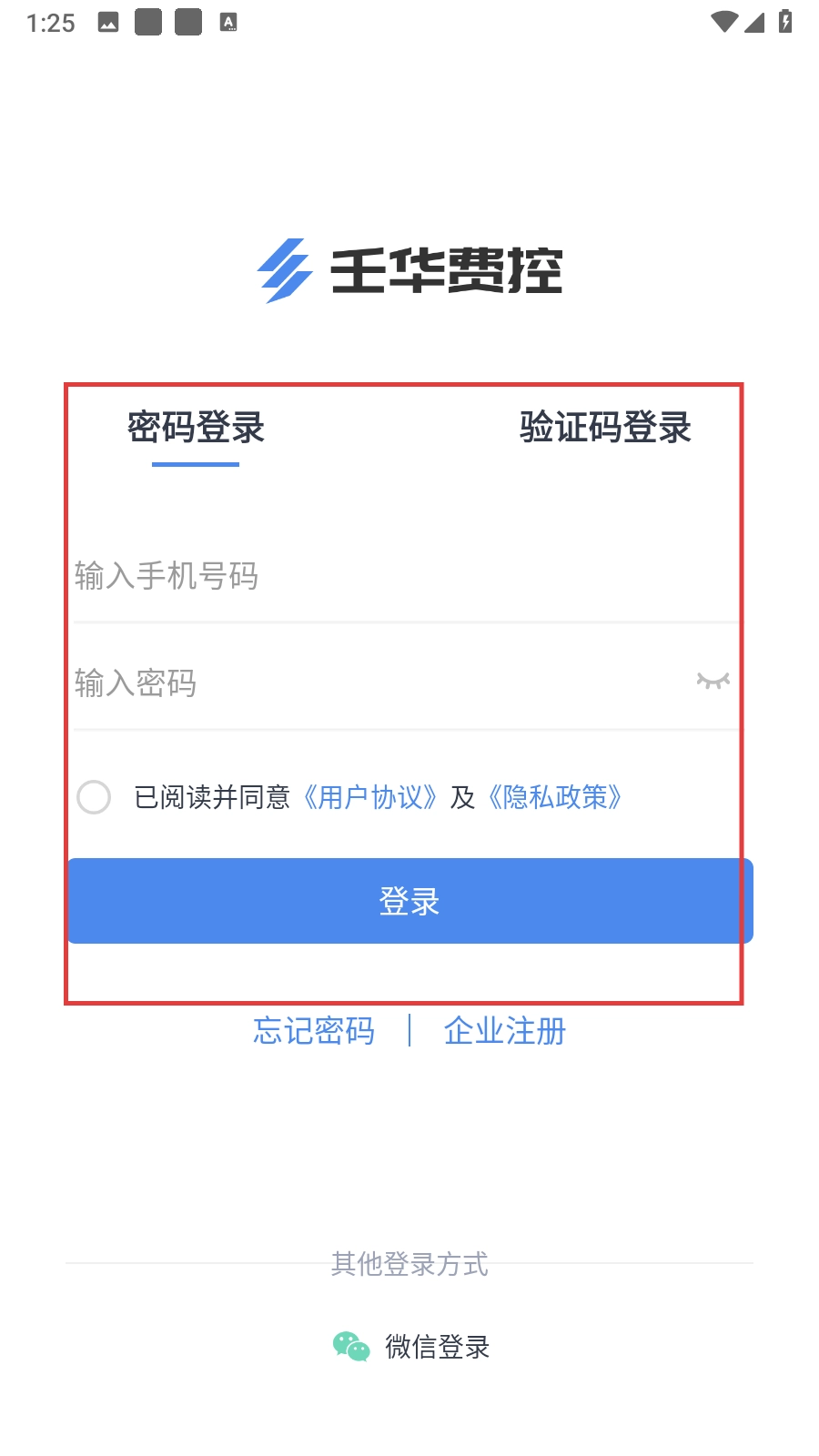 在登录界面,您可以选择密码登录方式,输入对应的手机号与密码,勾选同意《用户协议》和《隐私政策》后,点击登录按钮即可。