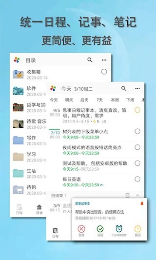 4、分类统计与梳理:支持自定义分类文件夹,把日程、笔记等内容按类别进行存储,借助关键词搜索,能快速定位到所需信息。