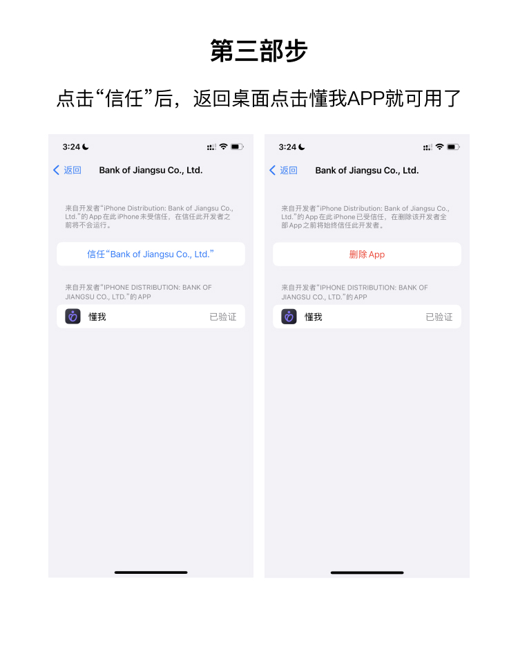 由于懂我在苹果市场被机查误判导致下架,因此在STORE中无法搜索到。请通过“苹果本地”按钮进行安装,安装完成后,需在苹果手机设置 - 通用 - VPN与设备管理里点击信任,详细步骤可查看安装教程。