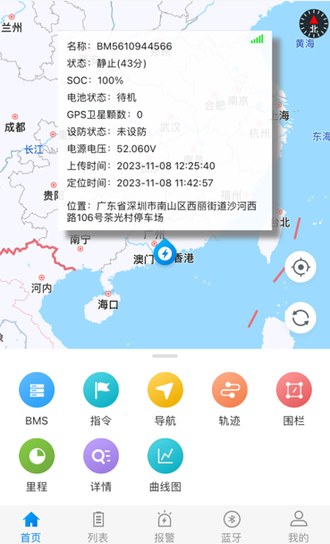 完成注册并登录后,您就能对自己的设备执行定位、查看及管理BMS数据等操作。