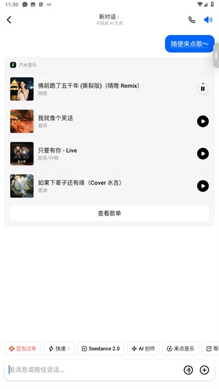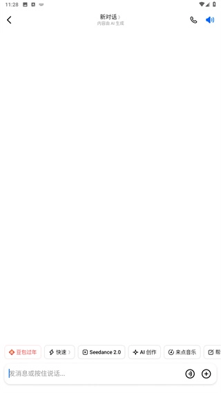 1、首先进入软件后,能够在下方搜索框中输入消息或按住说话与豆包进行互动;