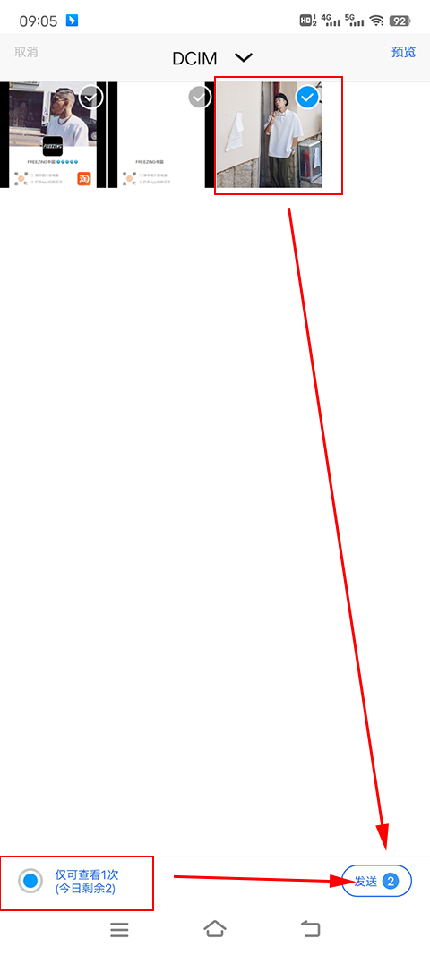 3、选定图片后,点击发送就行。