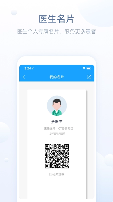 【个人专属名片】:每个医生都可以在应用中打造个性化的专属名片,便于患者就医。