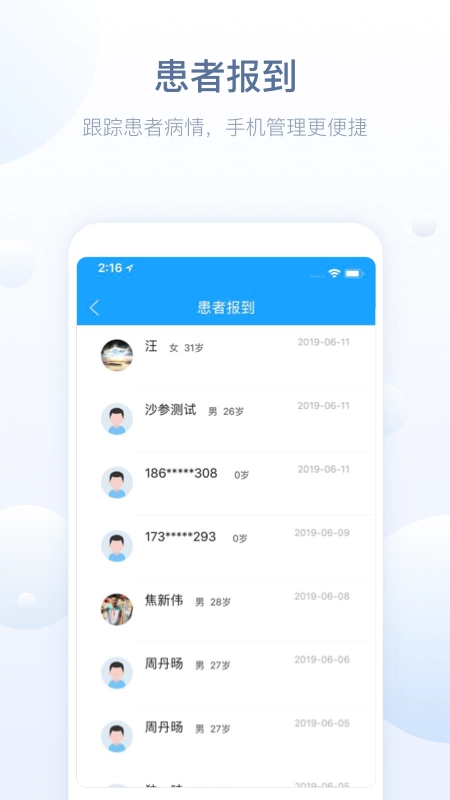 医生可以通过患者报到、随访等工具来管理自己的患者。