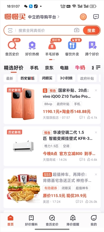 依托历史价格走势与全网商品比价等数据生成的排行榜,是千万追求极致性价比的慢友们的购物比价好帮手。