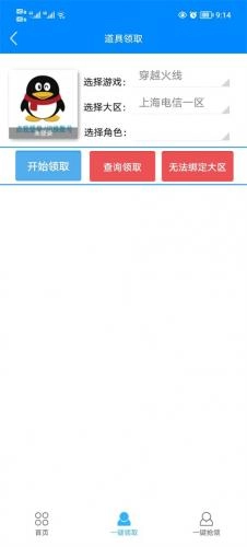 2、登录完成之后选择大区和角色信息之后点击开始领取。