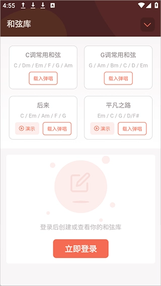 界面设计简洁,无任何广告干扰,专注于吉他学习与弹唱功能,致力于为用户打造纯净、流畅的音乐练习空间。
