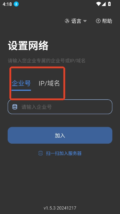 3、输入企业的IP地址或域名,直接加入企业通讯录,立即开始高效沟通。