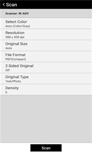 彩色/色彩选择, 分辨率, 原稿尺寸/扫描尺寸, 文件格式, 双面原稿/双面扫描, 原稿类型, 浓度, 原稿放置方式