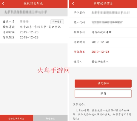 添加授权: