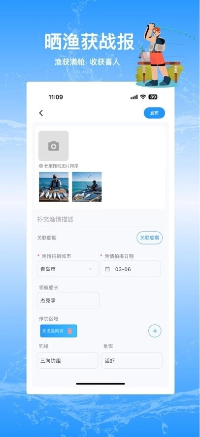 - 用户可通过图片或视频分享本次出海的渔情渔获。