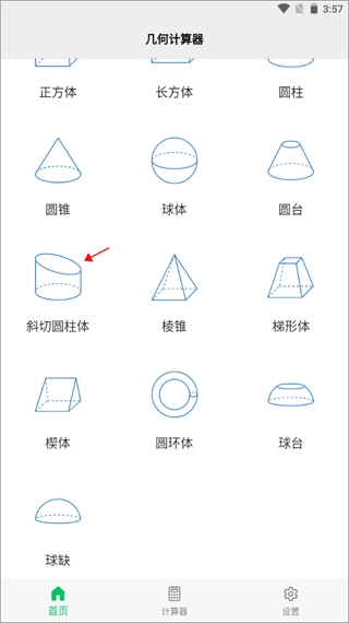 启动后会呈现多种几何图形选项,选择斜切圆柱体模型即可进入操作界面。
