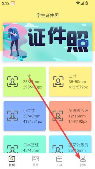 打开学生证件照,点击【我的】