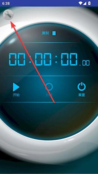 打开秒表计时器,点击左上角设置标识