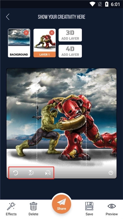 4、在制作图片的左下角,支持旋转、左右上下交换位置。