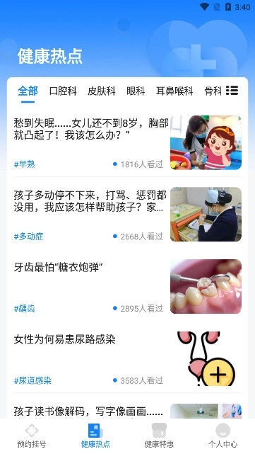 1、热门科室板块:系统会实时推送当下的热门科室,用户能够直接点击选择,进而查看该科室的详细信息。