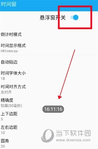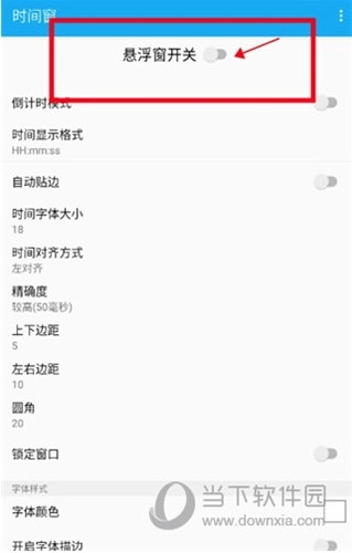 1、设置时间窗,在手机上启动软件,进入软件主页面,在页面顶部找到悬浮窗的开关;