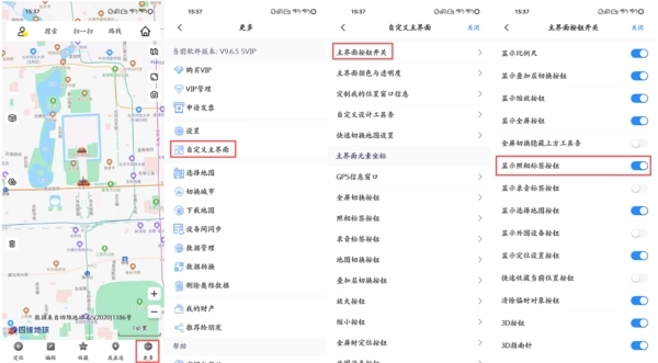 1、第一步,您需要让【照相标签】按钮在主界面呈现出来。操作步骤是点击【更多】→【自定义主界面】→【主界面按钮开关】,然后打开【显示照相标签按钮】这个选项。