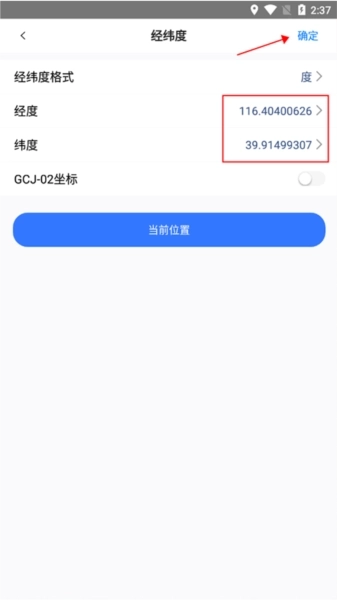3、然后输入经度和纬度后点击确定